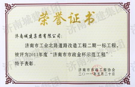 济南市工业北路蹊径刷新工程二期一标工程被评为2011年度济南市市政金杯树模工程