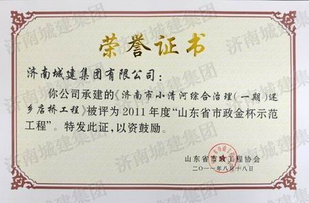 济南市小清河综合治理(一期)回籍店桥工程被评为2011年度山东省市政金杯树模工程