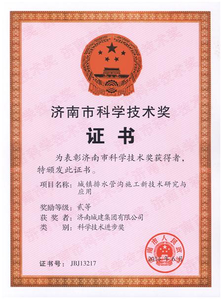 城镇排水管沟施工新手艺研究与应用济南市科学手艺奖贰等奖