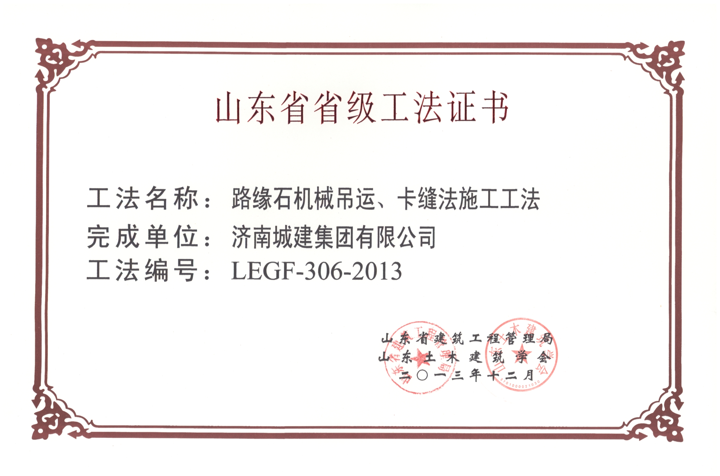 2013省级工法路缘石机械吊运、卡缝法施工工法