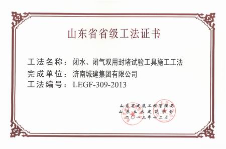 2013省级工法闭水、闭气双用封堵试验工具施工工法