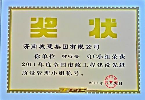 “柳行头”QC小组荣获2011年度天下市政工程建设先进质量治理小组称呼